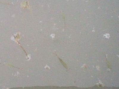 もはや何だかわからないがたぶんカイエビ(5㎜ぐらい。1匹で泳いでいる)